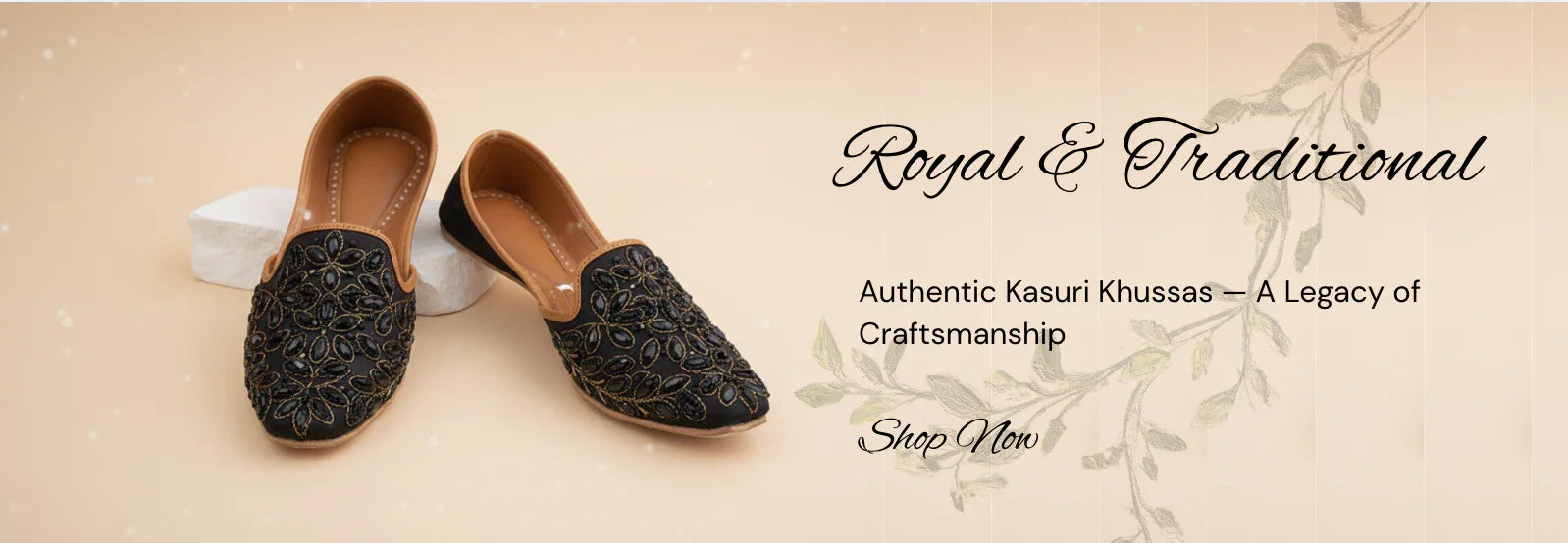At [Kasuri Jutti], we celebrate the timeless elegance of Kasuri Juttis, crafted with love and precision. Our mission is to bring authentic, premium, and comfortable traditional footwear to every home in Pakistan. Each pair is a perfect blend of heritage craftsmanship and modern style, designed for those who value both fashion and tradition.